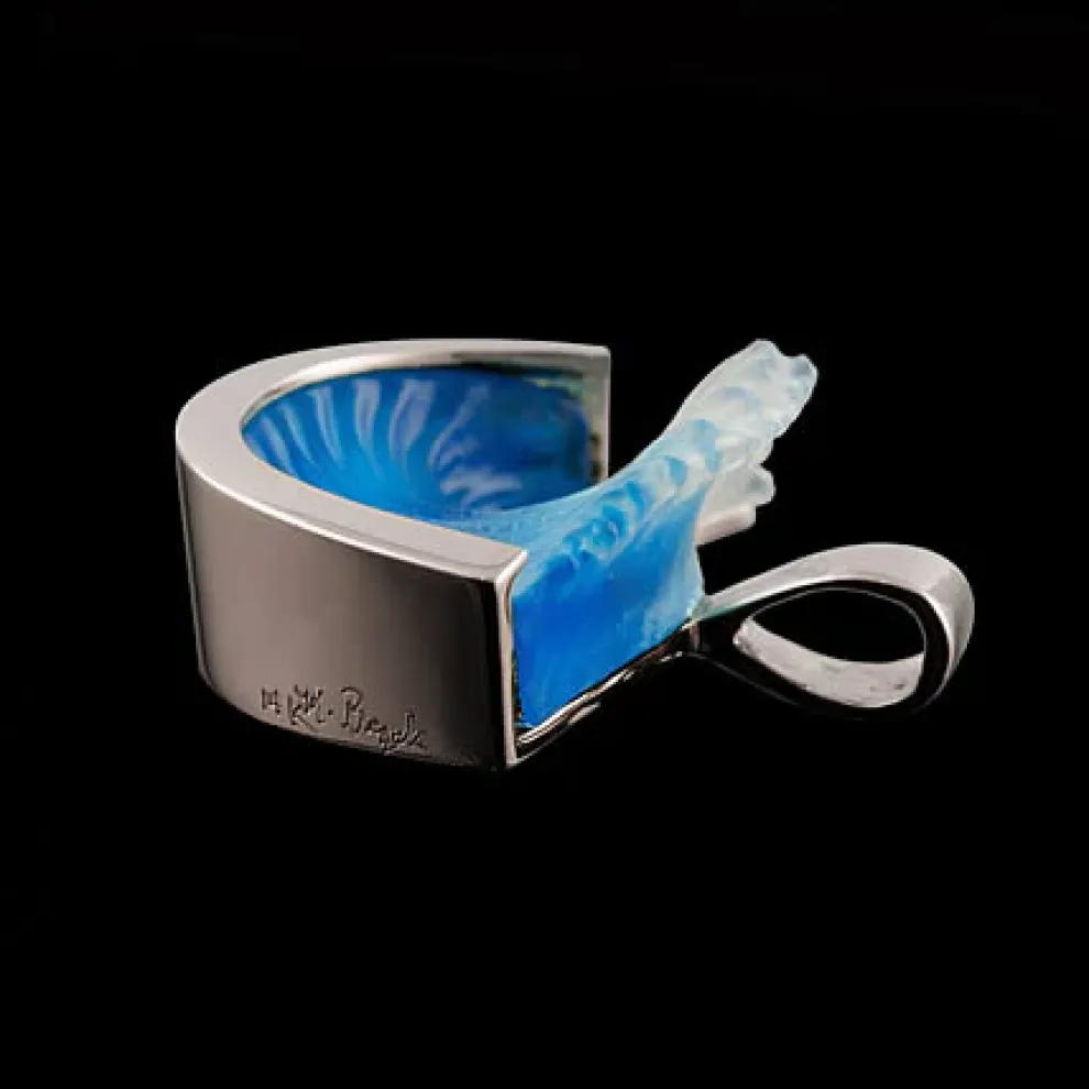 This Wave Pendant Is Made Of 14K White Gold And Glass. The Blue Wave Portion Is Made Of Hand-Casted Glass, Which Gives This Pendant An Incredibly Unique And Original Look. Matt Bezak Makes All Of His Wave Pendants By Hand.