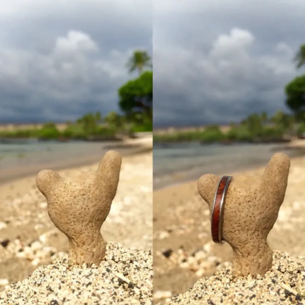 Titanium Stacker Ring With A Narrow Width To Wear With Your Wedding Ring. Dark Hawaiian Koa Wood Is A Deep Dark Brown With Hints Of Dark Auburn And Striped Black Grain Texture. Handsome On A Man, Beautiful On A Woman, Perfect For A Special Birthday Or Anniversary.