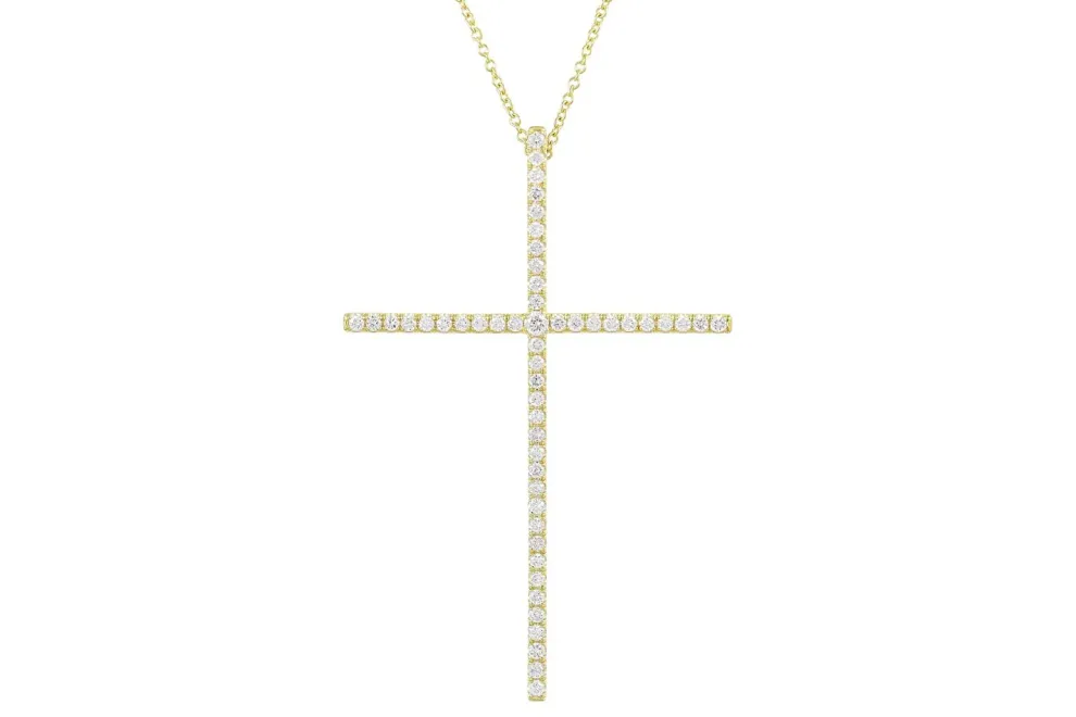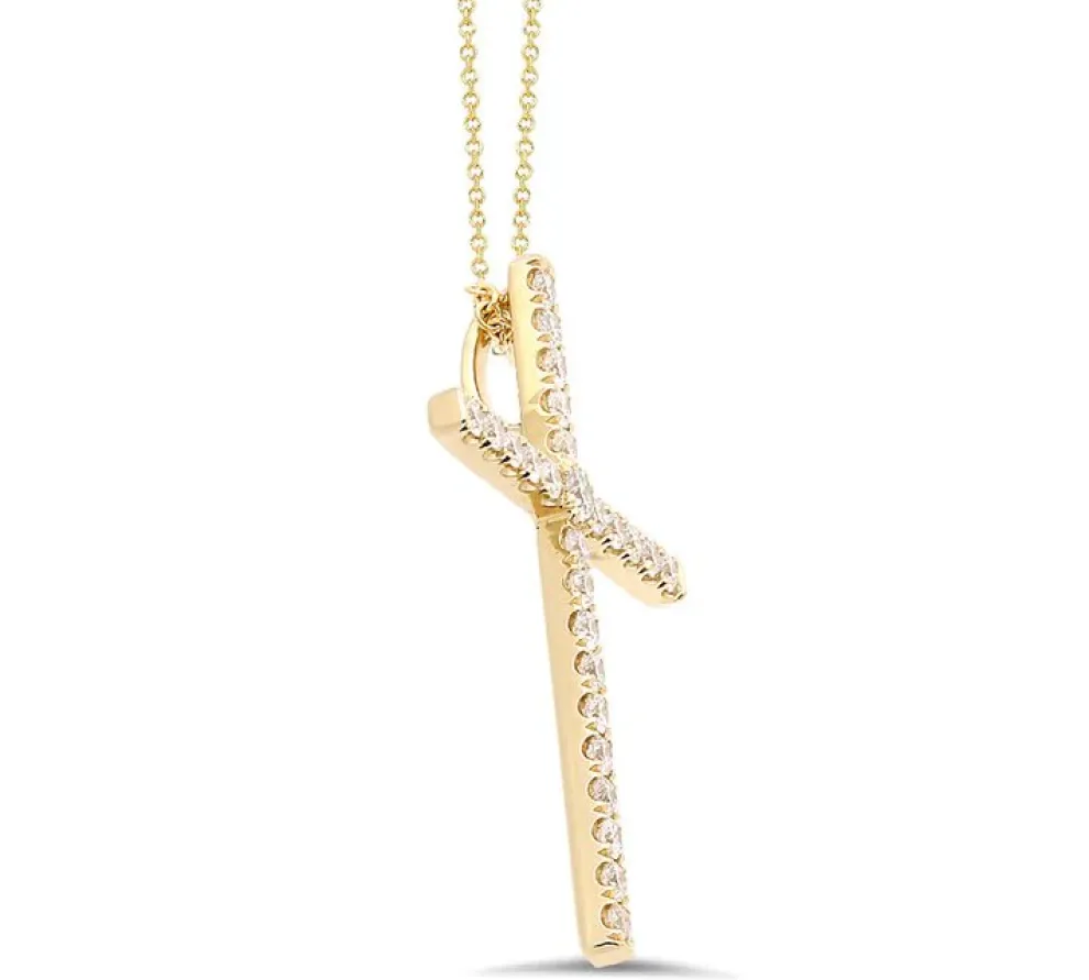 18K Gold Pendant And Round Brilliant Cut Diamonds.